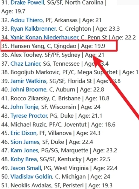 北京时间5月30日,ESPN选秀专家Jonathan Givony在NCAA球员退选截止日后更新2025NBA选秀Top100榜单,热门人选弗拉格、哈珀、贝利排名前三,中国球员杨瀚森从上一期的第73名跃升至第35位。